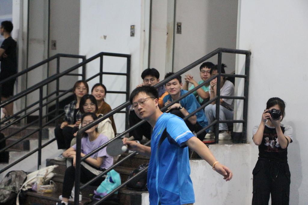 来到决赛,化院对战计算机与信息科学学院。冠军之路必定荆棘坎坷,面对劲敌,双方都屏息凝神,不敢有一丝懈怠。发球,球在空中旋转,落在台上,被拍击中,整个过程极富运动美感。拉扯,盘旋,推挡,双方势均力敌,打得有来有回。最终化院以2:3落败,但也获得了团体第二名的好成绩。选手顾浩还获得了男子单打第二名的佳绩。