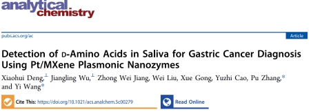 胃癌的早期诊断对提高治愈率和生存率至关重要,针对胃癌早期患者唾液中D-氨基酸(DAA)含量显著升高这一特征,开发出一种近红外光响应的Pt/Ti3C2Tx等离激元纳米探针,基于等离激元增强的过氧化物酶活性,构建了一种比色/光热双信号检测DAA的新方法。该方法应用于45例临床样本中DAA的含量检测和胃癌诊断,结果与临床诊断结论高度一致,对胃癌诊断的特异性达96.3%,阳性预测值达94.7%,准确率达97.8%。该工作不仅证实了DAA可作为胃癌及相关胃肠道癌症的有效诊断标志物,还为临床诊断提供了可靠性高、非侵入性的唾液检测新方法,避免了传统活检等有创检查给患者带来的创伤。该成果以“Detection of d-Amino Acids in Saliva for Gastric Cancer Diagnosis Using Pt/MXene Plasmonic Nanozymes”为题发表于《Analytical Chemistry》。a动漫