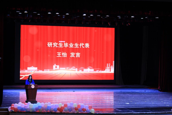 殷殷嘱托道出离别的不舍与未来期望。执行院长王燚首先对毕业生表示衷心祝贺,并送出三句话:第一,牢记“国之大者”,勇担时代使命;第二,“永远保持对知识的渴望和追求,勇于创新,躬身实践,把学习当作一种生活方式,一种不断进步的动力;第三,始终坚守自的信念和原则,做一个有道德、有责任感、有担当的人。希望同学们牢记“化知格物,学理修德”的院训,找到自己的化学方程式,在生命的反映中绽放最耀眼的光芒!