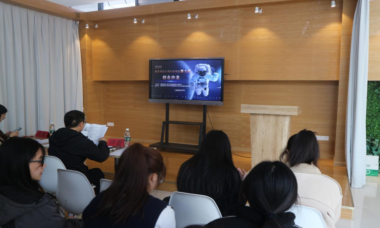 团学会创新创业基地于校友会堂四楼青创空间成功举办第九届“创业沙龙”。本次比赛邀请到23级辅导员王震强、20级辅导员潘登和创新创业基地负责人柳灵锐担任评委。
