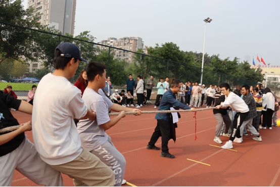 绳子两端的同学们汗流浃背,满脸通红,但他们始终用力拉扯着绳索,努力将对方队伍往后拖,决心为自己的团队争取胜利。那根在绳子上摇摆的红绳,牵动着无数人的紧绷着的心。场外的同学也加油助威,呐喊声此起彼伏。比赛在一片欢呼声中落下帷幕,但那股青春的热情和拼搏的精神却依然挥之不去。