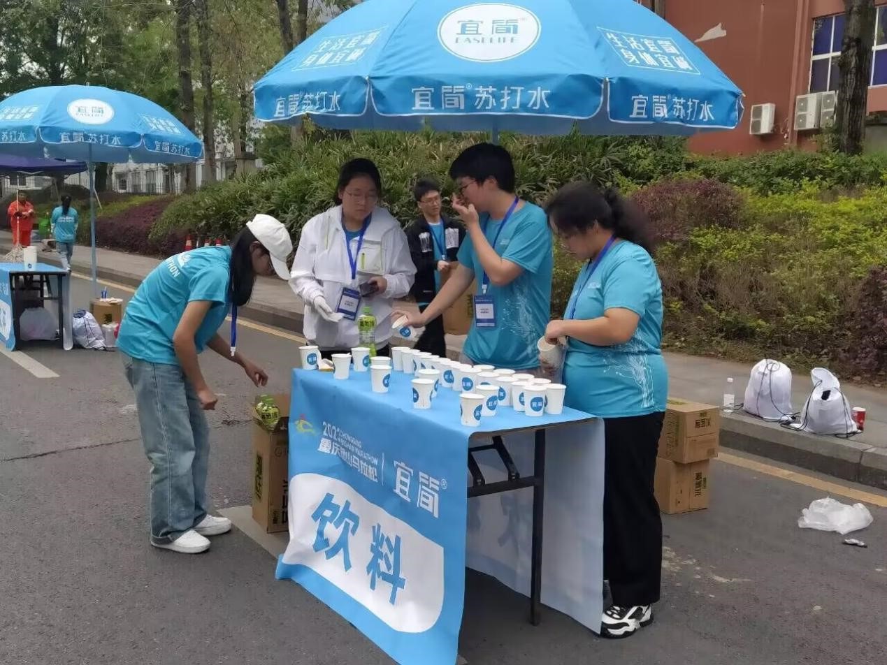 共招募24位志愿者,负责马拉松十公里补给站。凌晨3:30,志愿者们乘着清明的月光,前往目的地。凌晨4:30,志愿者们开始了赛前准备工作:他们整齐有序地摆放6张桌子,一半摆放水,一半摆放饮料,在桌子旁边搭帐篷和建立垃圾回收站,同时还备有紧急物资。