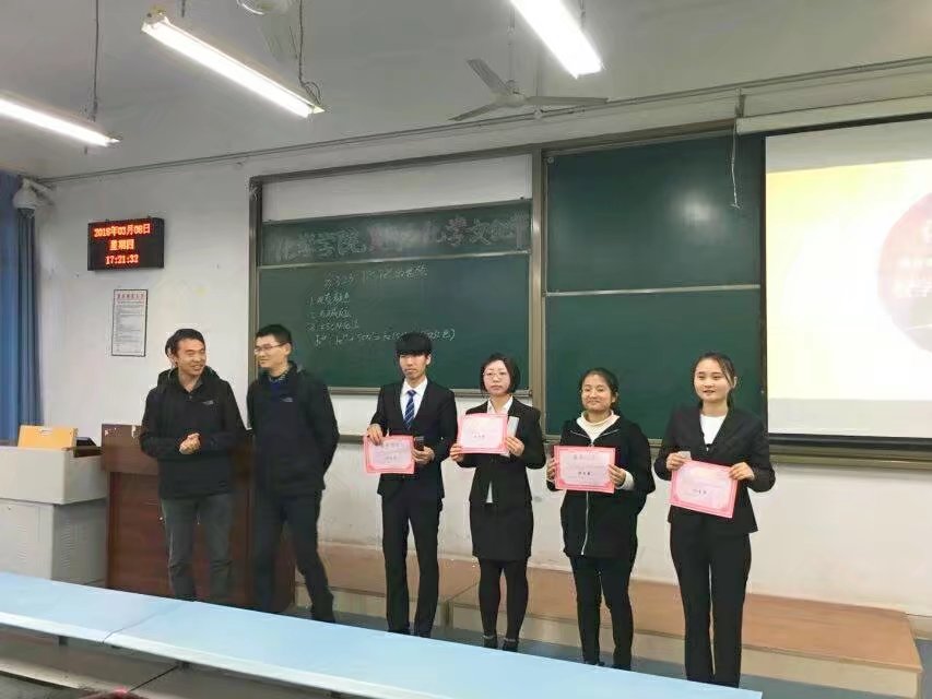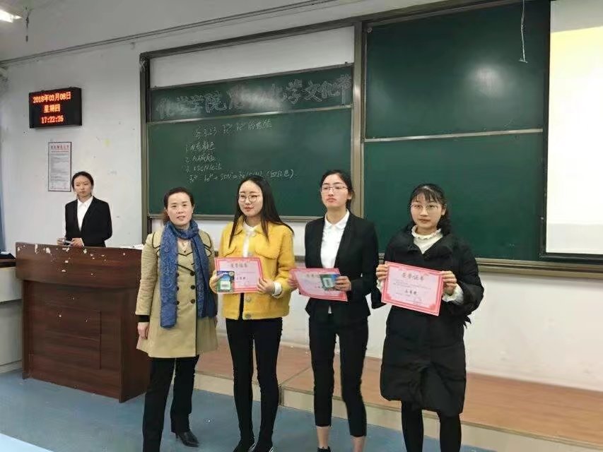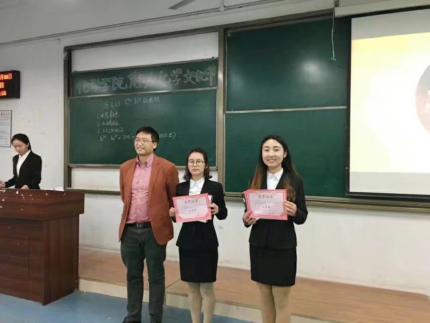 在许应华老师的评奖后,主持人宣布获奖名单:一等奖:郝静,二等奖:王春华、 尹巧,优秀奖:陈西、陈猛、林晓慧、刘翠竹,此次师范生技能大赛的成功举办, 为化院师范生提供了一个学以致用的实践与交流的平台, 对a动漫 提升师范生实践教学水平, 增强就业竞争力起到了积极的促进作用。更加突出了a动漫 第三届魅力化学文化节的精神内涵。