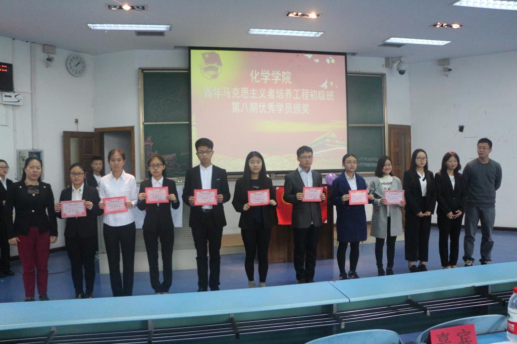 活动一开始,同学们先观看了一段关于“青马工程”的视频,对学校的这一工程建设和取得的成果有了初步的了解。然后,第八期学员代表郑晗发言。郑晗同学围绕从中学到的知识和同学们交流了自己的心得体会,并感谢学校给予了同学们这样一个学习马克思主义的宝贵机会。发言过后,主持人宣布由卢洪英书记和于斌老师给第八期优秀学员颁奖,全体优秀学员合影留念。