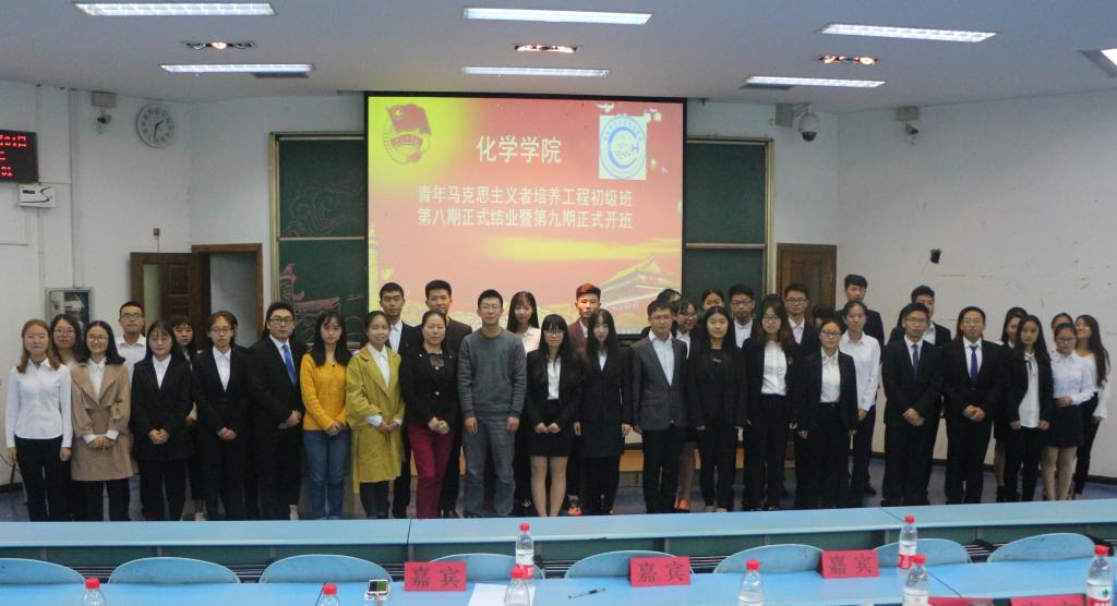 随后,第九期学员代表李文发言。他提出同学们应当积极参与青马班的相关课程,珍惜韶华,勇于求知,秉承厚德、笃学、砺志、创新的校训,努力成为一名有理想有担当的青年马克思主义者。李文的发言铿锵有力,在场的同学都深受鼓舞。最后,于斌老师上台讲话并宣布第九期青年马克思主义者培养工程初级班开班。最后全体参与人员合影留念。