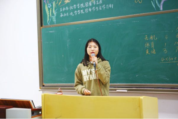 同样来自化学一班的赵敏带来了主题为“用心耕耘,静待花开”的分享。性格安静沉稳的她以自己的发展历程为轴,始终秉持着“学习应该放在首位”的态度,时刻提醒学弟学妹要从自身出发,用心做好职业规划,并结合自己在学习、生活、学生工作等方面的经验,给出了一系列实用的建议,同学们获益匪浅。
