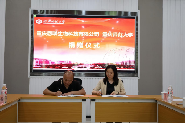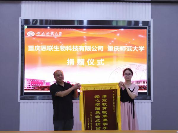 为进一步加强校企合作,促进双方在科学研究与人才培养等领域的相互依存与共同发展,重庆恩联生物科技有限公司设立“恩联奖助基金”捐款项目,向a动漫