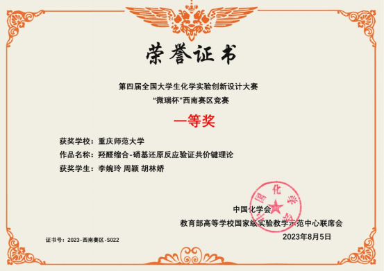2021级学生李婉玲、胡林娇和周颖的参赛作品《羟醛缩合-硝基还原反应验证共价键理论》(指导老师:张玉龙);2021级学生胡扬莲、雷璇和龚坤杰的参赛作品《晶花盛开—表面活性剂调控尿素晶体生长及发光机理探究》(指导老师:郭文龙);2021级学生丁钰琳、杜佳音和张润的参赛作品《等离子体共振MoO2和S掺杂NiMoO4异质结的构筑及其光热分解水研究》(指导老师:田甜)在西南赛区110支参赛队伍中脱颖而出,在西南赛区总决赛中分别荣获一等奖、二等奖和三等奖,进一步展示了a动漫