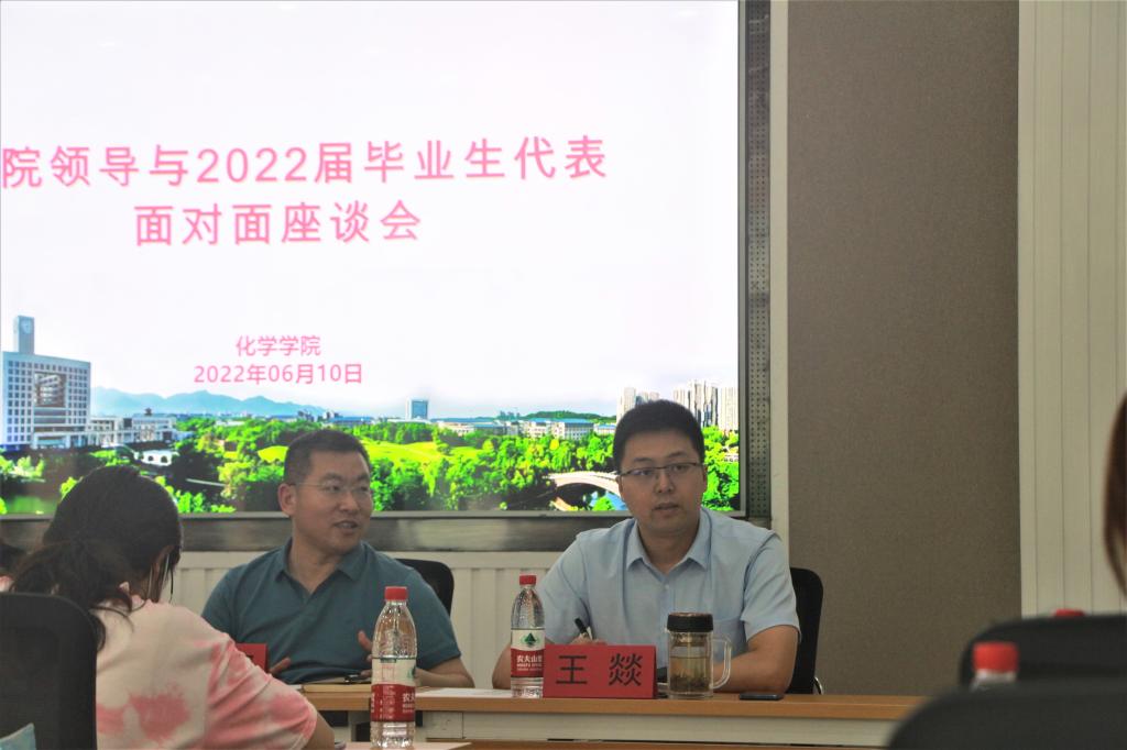 贯彻学生工作大会精神,进一步提高人才培养质量,全面服务学生发展,6月10日上午,化学学院在求是楼202会议室召开院领导与毕业生代表面对面座谈会。党委书记卢洪英、院长(主持工作)刘玺、党委副书记蒋红副院长王燚、院长助理周功兵出席会议,来自三个专业的20余名毕业生代表参加会议会议由党委副书记蒋红主持