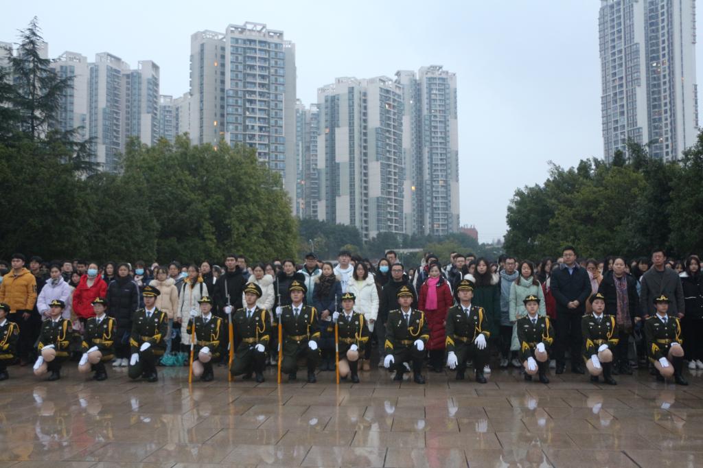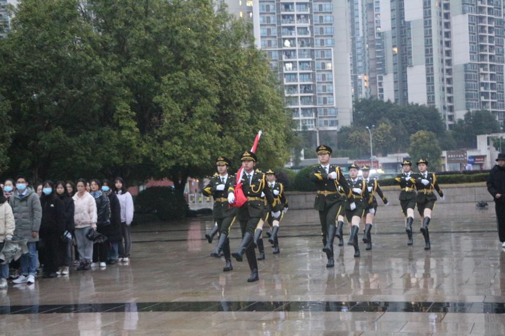 于2021年12月27日上午在大学城校区东大门广场庄严举行升旗仪式。早晨天降微雨,a动漫