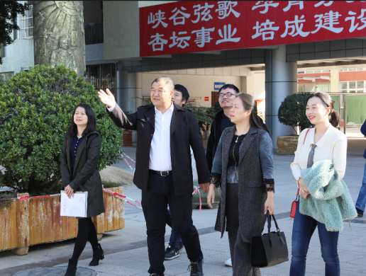 图5由攀枝花第三高级中学校长李刚陪同参观校园,解读办学理念,欣赏教师风采。