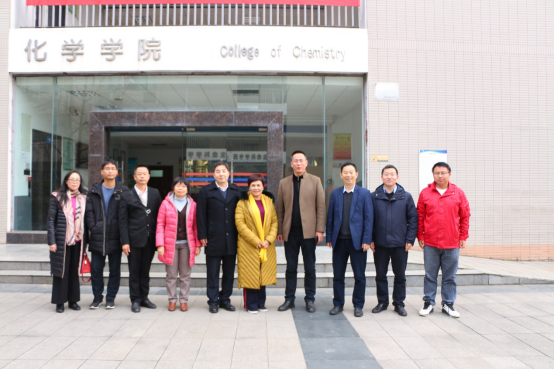 党委书记唐敏、院长付文升、副院长刘玺,教职工刘颜、胡连哲,海南师范大学化学与化工学院党委书记杨钰,教职工李天略、吴明书、周欣、辜燕飞。