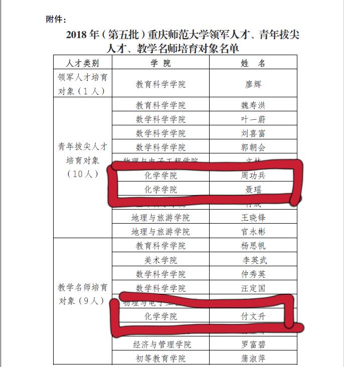 2018年(第五批)教学名师及青年拔尖人才培育对象