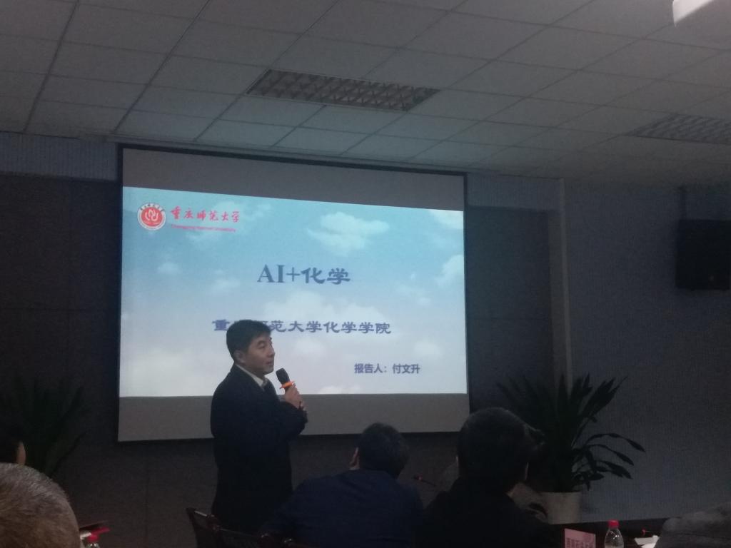 付文生教授作题为《AI+化学》的主题报告。并结合学院的发展实际今后的发展方向与目标,同与会代表展开讨论,吸取其他学校的优势,相信在学院的未来发展上,会做到更好!