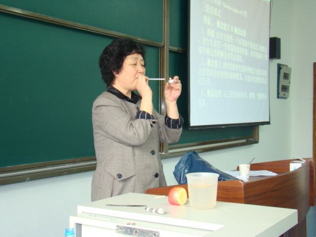 首先,郝教授向同学们介绍了科学教育课程改革的国际国内背景。接着,郝教授又通过丰富的案例和生动的演示向同学们讲述了行为主义、信息加工、建构主义等学习理论以及它们对科学课程与教学的重要影响。同时,她还对“脆弱知识综合症”、“科学探究”等概念进行了深入的剖析。另外,郝教授还对我国科学教育的未来发展前景作了美好的憧憬,鼓励作为科学教育专业开拓者的我们,要勇敢面对各种困难和挑战。郝教授生动诙谐的演讲赢得在场师生们的阵阵掌声。