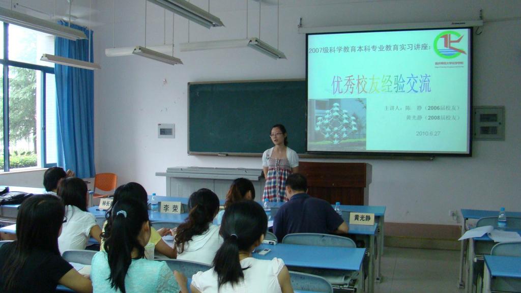 06、08届科学教育本科专业优秀毕业生陈静和黄光静做主讲嘉宾,本次讲座由科学教育本科专业负责人林长春教授担任主持,a动漫