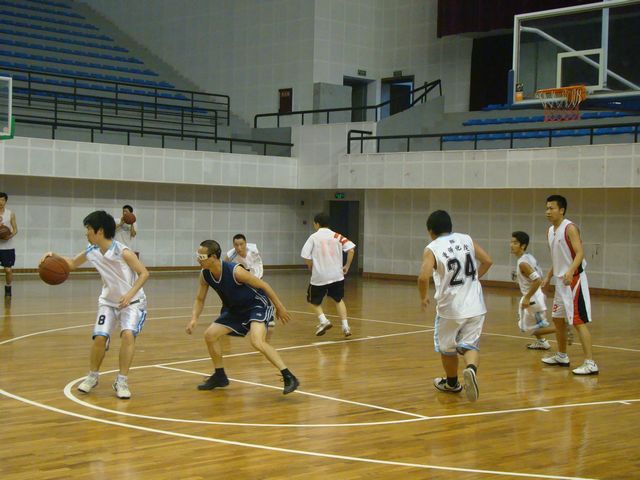 这场比赛打得异常激烈,双方都顽强拼杀,配合默契。比赛过程中高潮迭起,场外观众不时爆发出阵阵欢呼。学生队虽然精力旺盛,但在技术上毕竟不如老师们经验丰富,最终以57:67落败。