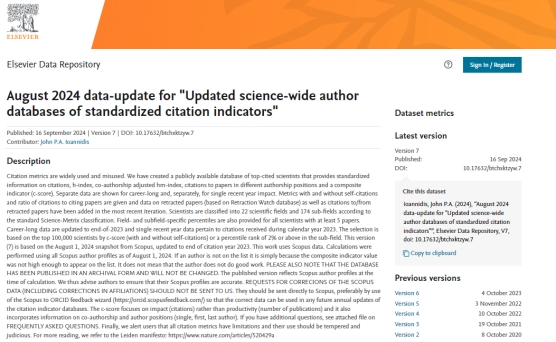 9月16日,美国斯坦福大学和爱思唯尔数据库(Elsevier Data Repository)共同发布了2024年度《全球前2%顶尖科学家榜单》(World's Top 2% Scientists List),a动漫