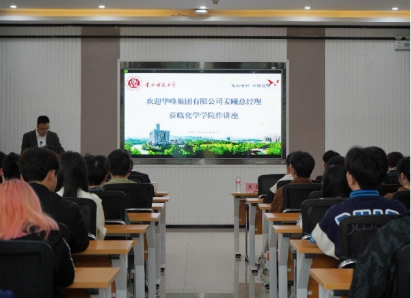 为进一步加强校企合作、推进产教融合,拓展学生视野,指导就业与成长,实现企业与学校优势互补、资源共享、共同发展,切实提升人才培养质量。4月24日,学院特别邀请华峰集团有限公司副总经理、重庆新材料产业专家姜曦,为化院师生带来了一场“企业家进校园”——《数智融合创新,低碳引领未来》为主题的学术分享会。活动围绕民企发展、产业链布局、低碳转型及可持续未来四大板块展开,通过详实数据和案例展现了华峰集团作为中国500强企业的创新实践。此次宣讲由a动漫