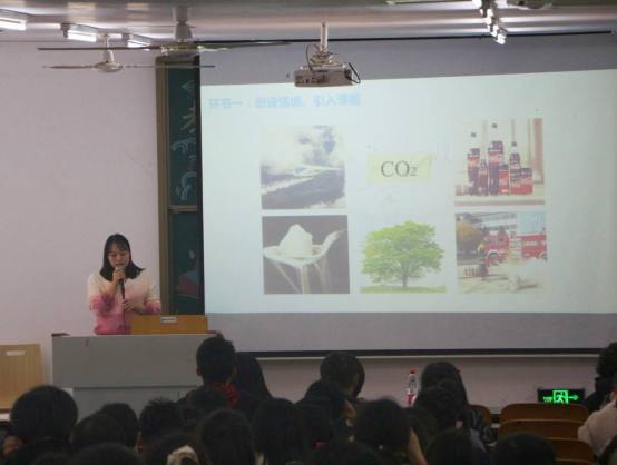 “长江后浪推前浪,世上新人赶旧人”,随着新课标的提出,老师们的教学方法也需改进创新。范丹丹老师紧跟潮流,用一种新的方式设计了自己的说课。老师围绕着二氧化碳的产生、性质、用途等展开教学,最后指出“化学从生活中来,又回到生活中去”,将化学教学内容紧扣生活,更利于同学们的理解,为同学们呈现了一堂优质课程,展现了中学课堂教学该有的风采和教学状态。